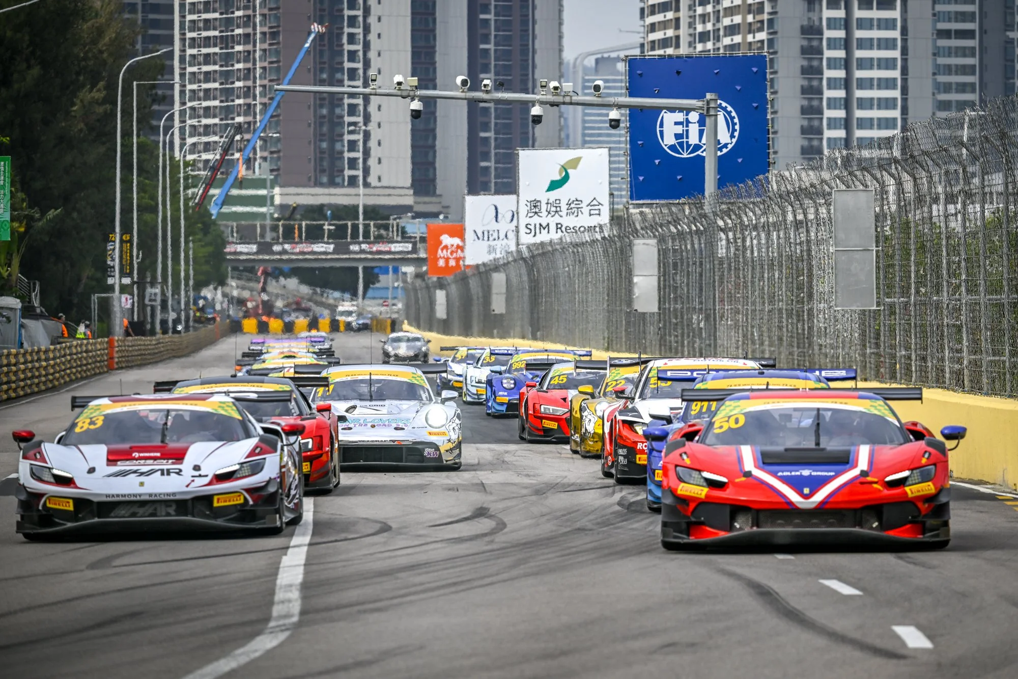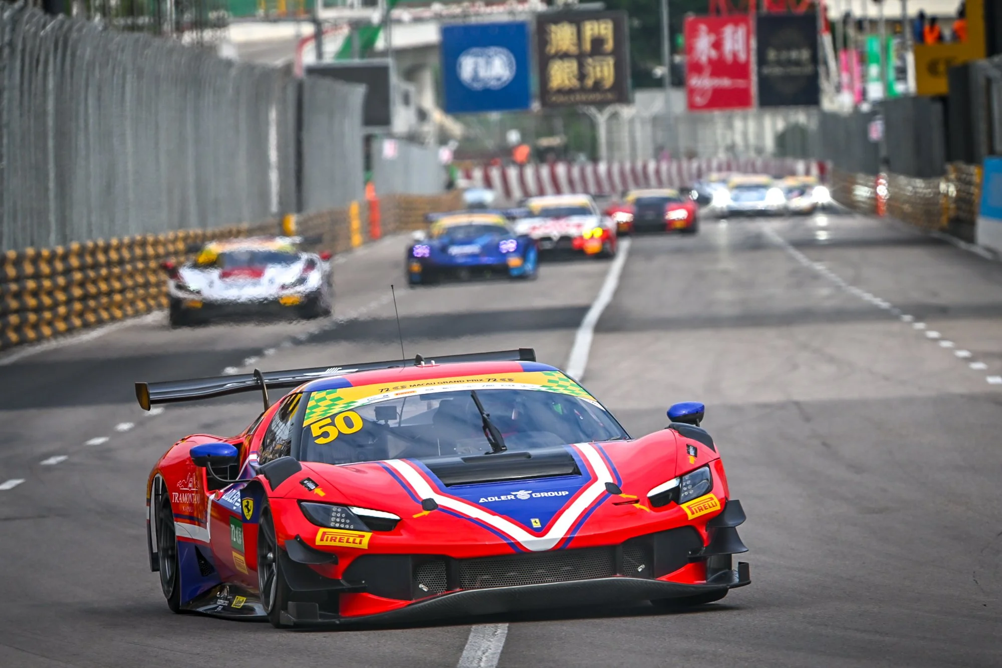 📷 © Macau Grand Prix. Antonio Fuoco in AF Corse #50 Ferrari 296 GT3 ahead of Yeffe Ye with #83 Harmony Racing Ferrari 296 GT3